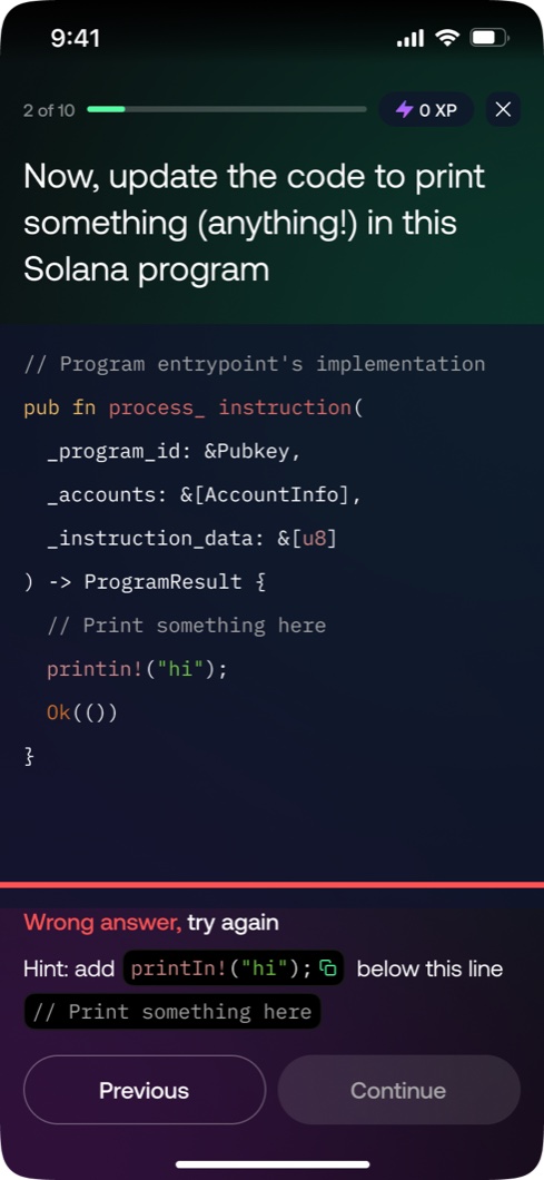 - Challenge flows: multiple choice, text-based, and live coding challenges