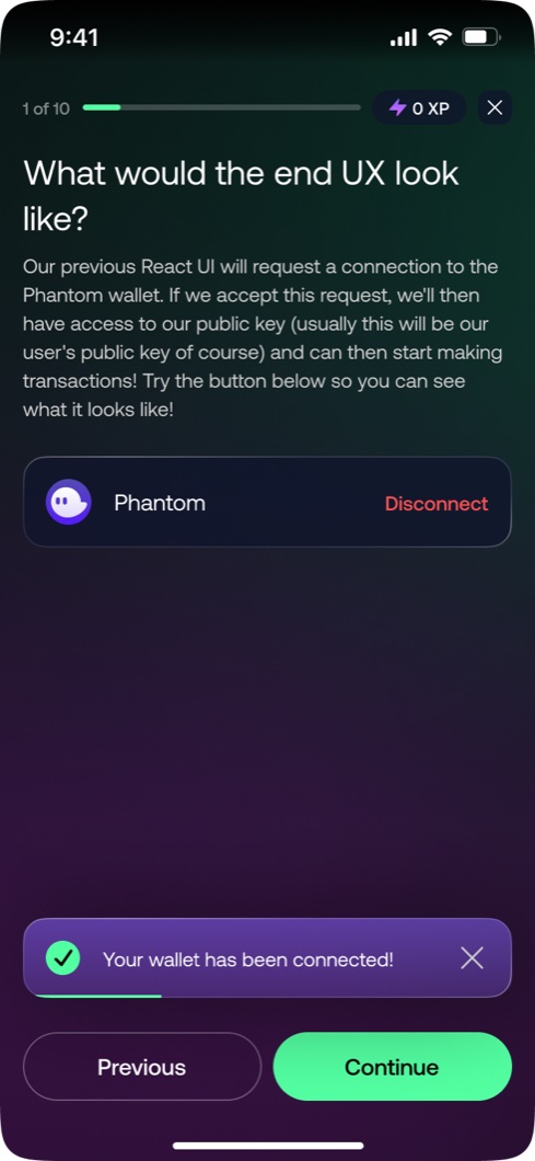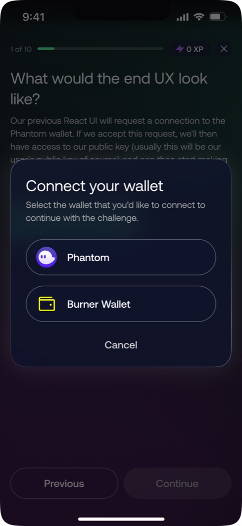 - Connect wallet flow