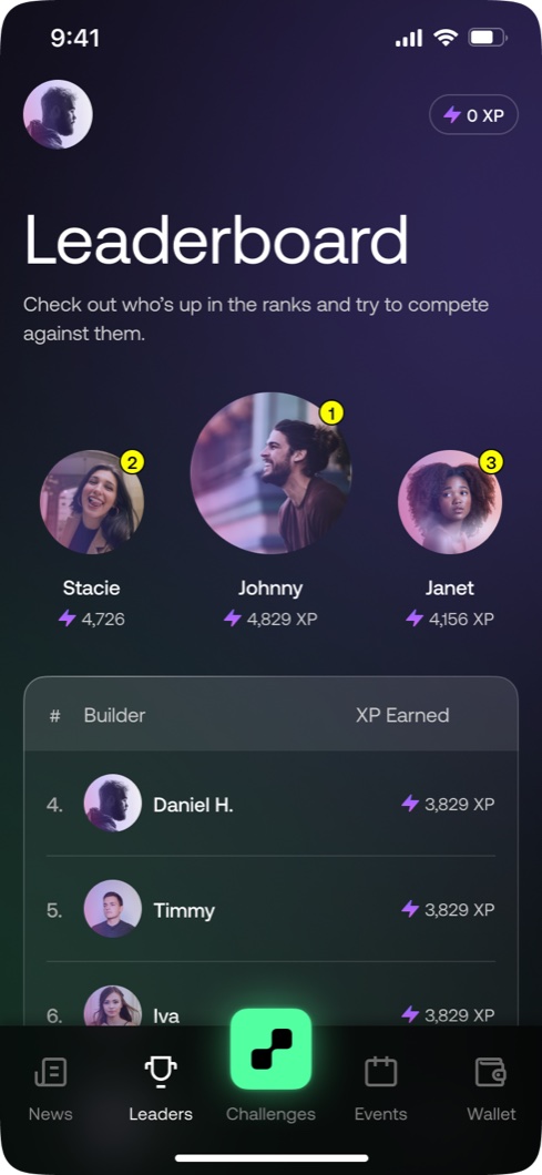 - Designed the gamification layer: leaderboards, NFT rewards at challenge completion, progression tracking, and weekly drops