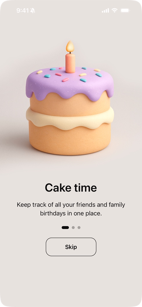 A birthday reminder app designed, built, and shipped solo across iOS and Android. A 15-year-old idea brought to life through AI-assisted development with Claude Code.