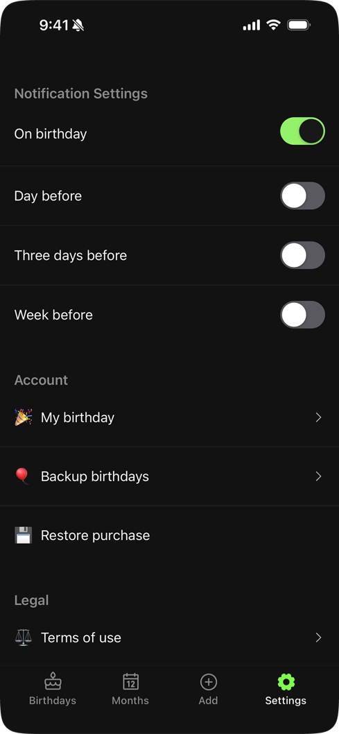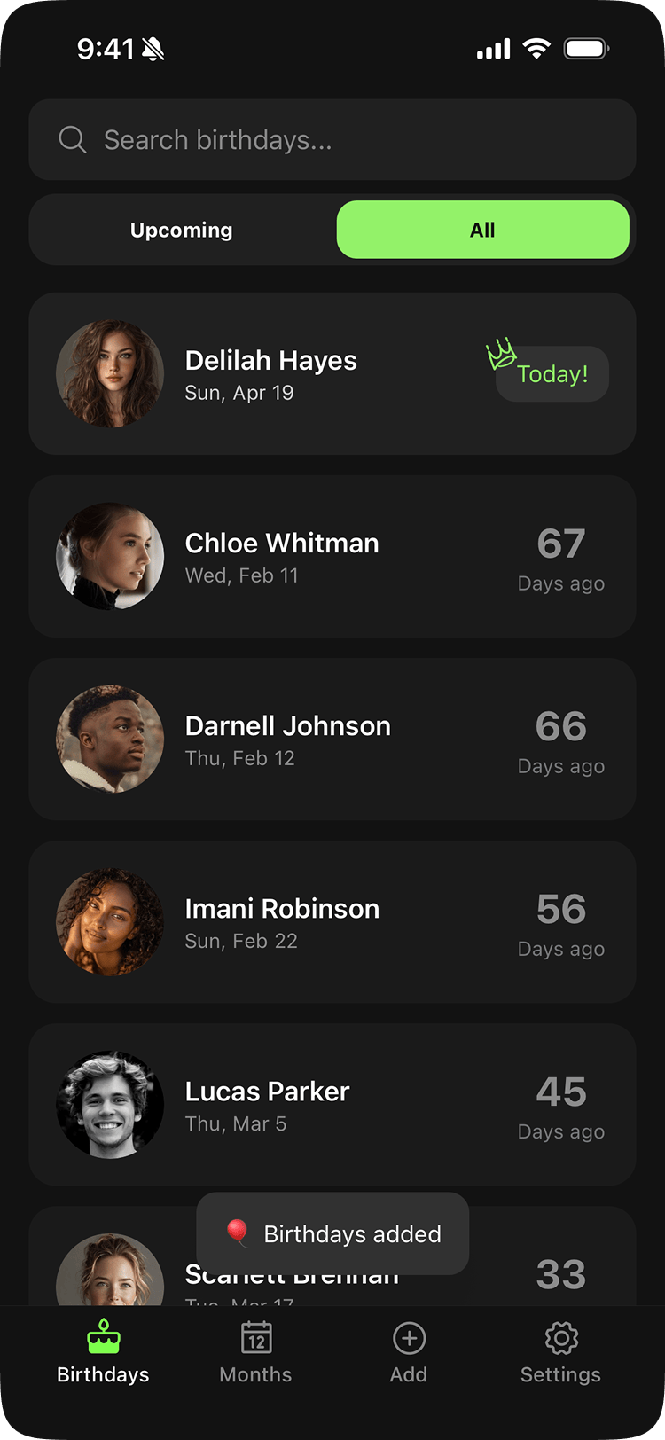 "I've only been using this app for a little while but I already love it. It makes it super easy to keep track of birthdays. It's simple, clean, and just works. Honestly feels like one of those apps that quietly makes your life better."