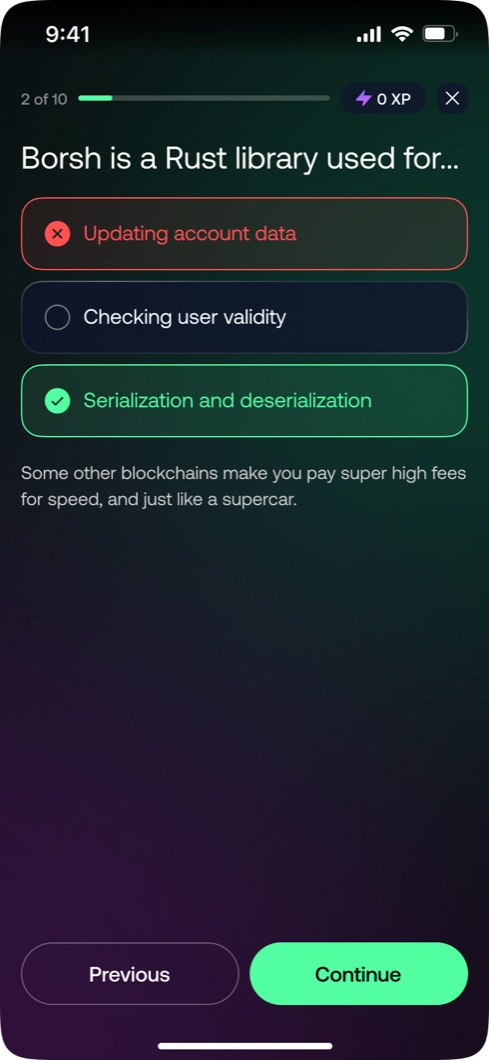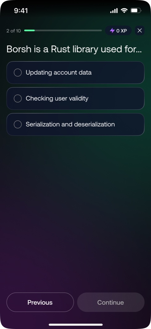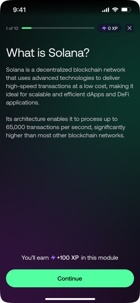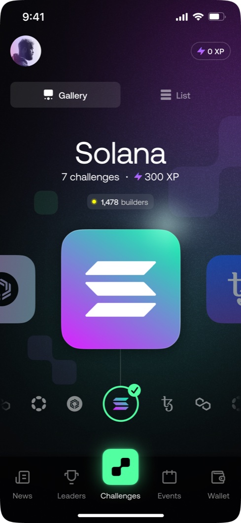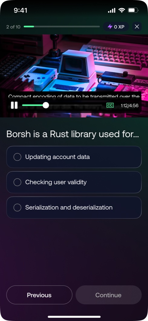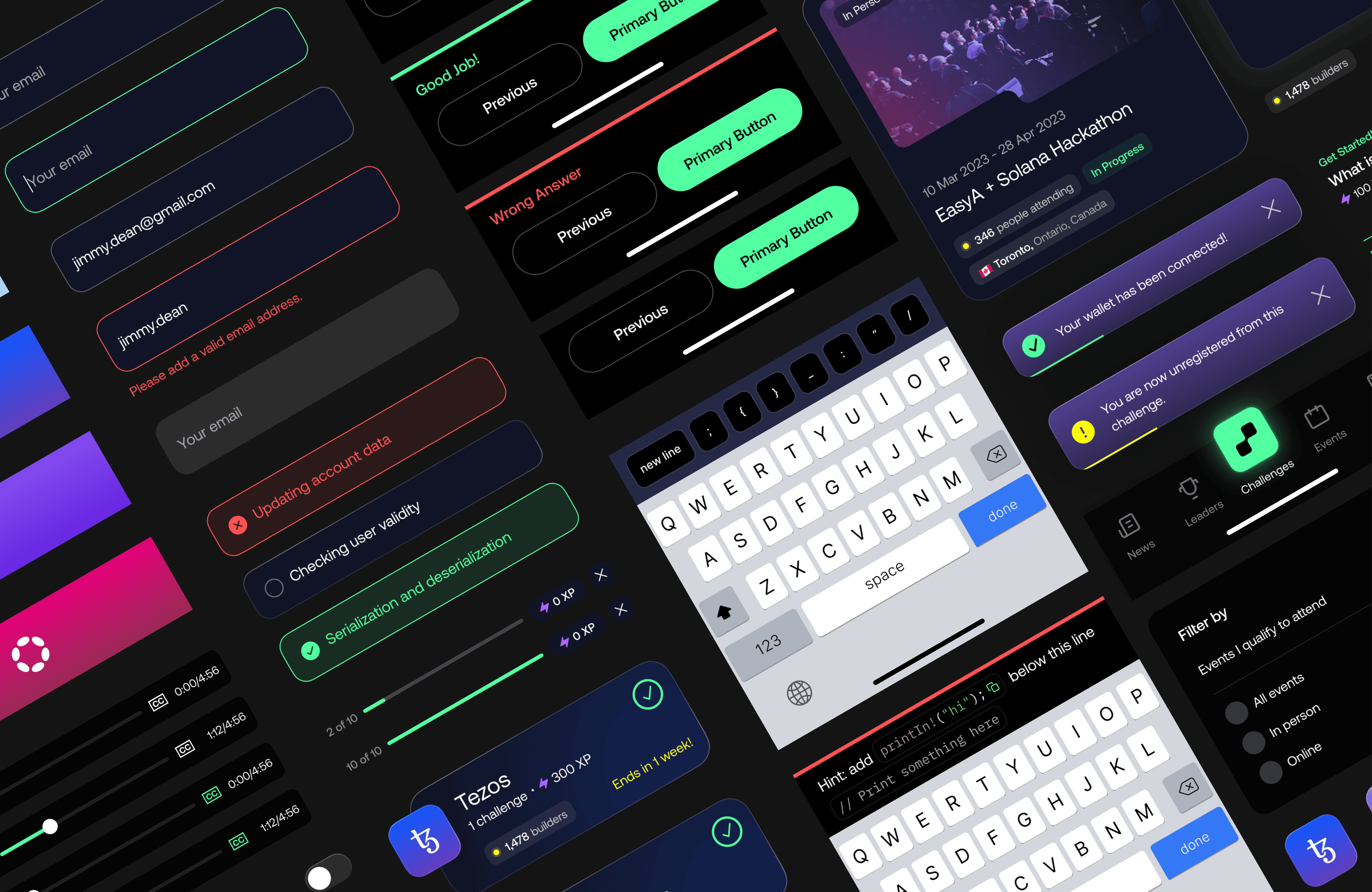 A full platform redesign for one of the world's leading blockchain learning apps. Six weeks from brief to handoff, built at Unfold. UX, UI, and a complete design system.