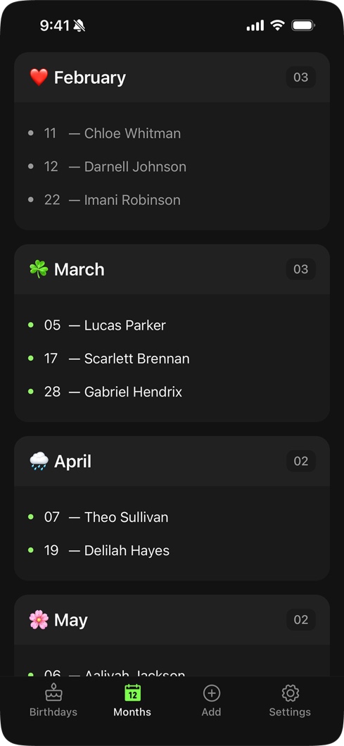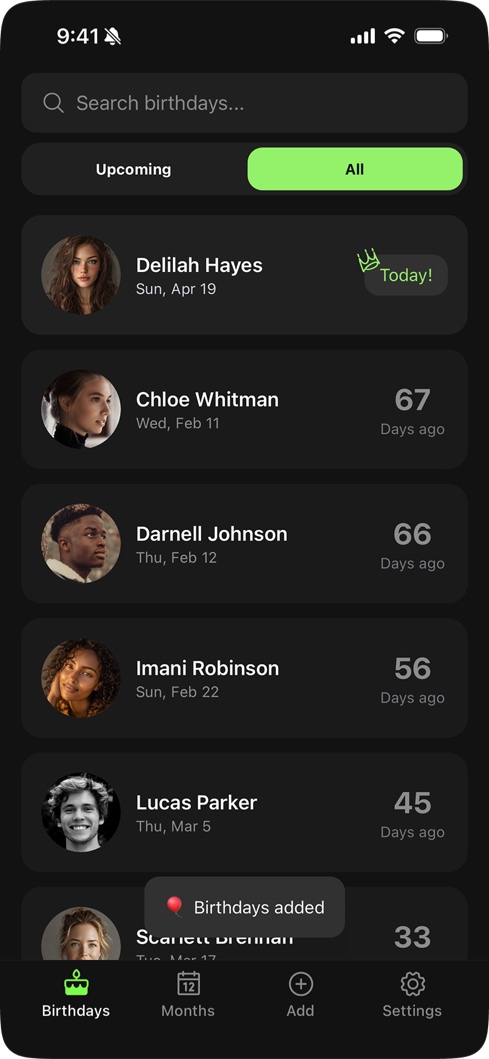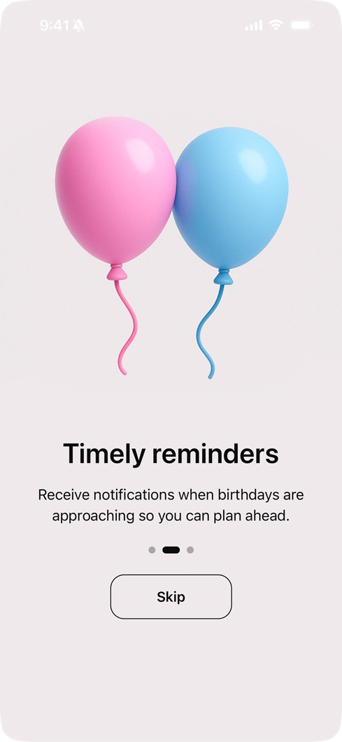 "I've only been using this app for a little while but I already love it. It makes it super easy to keep track of birthdays. It's simple, clean, and just works. Honestly feels like one of those apps that quietly makes your life better."