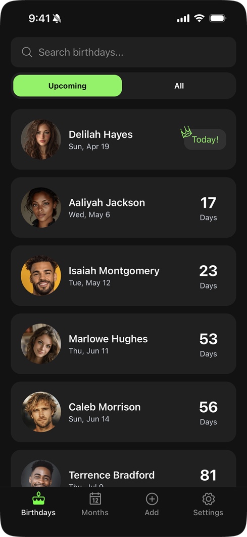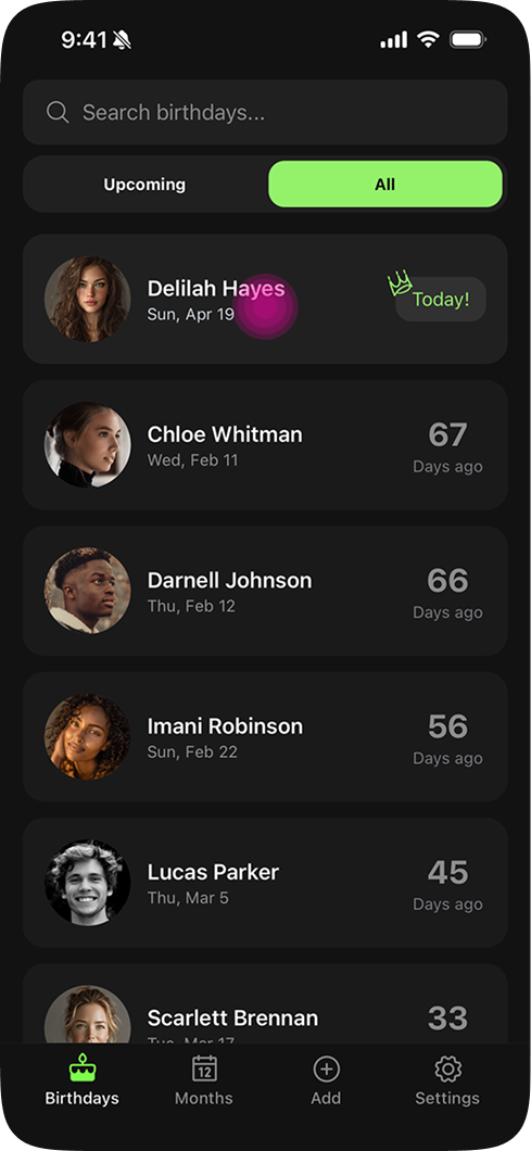 Like a lot of people, I'd occasionally forget a birthday and feel bad about it. There were apps that were supposed to help, but most were cluttered, ad-heavy, and hadn't been touched since 2010. Nobody had built something that actually felt worth keeping on your phone.