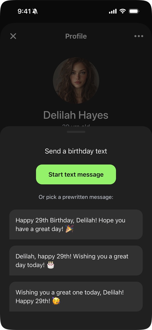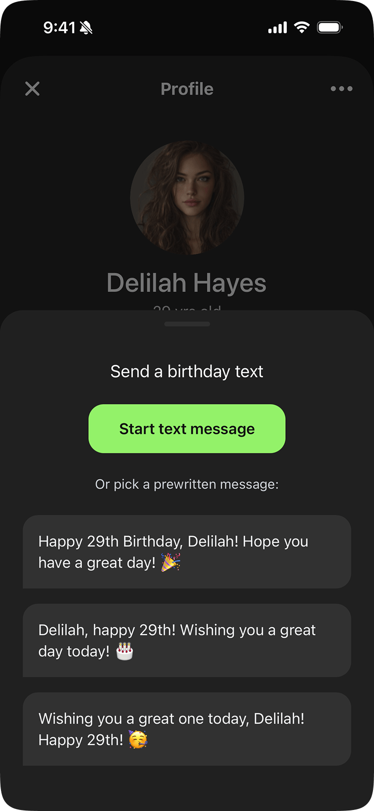 Two profiles kept showing up. One is personal: a busy professional or parent who wants to show up for the people in their life without it becoming another thing on their plate. The other is professional: someone who manages client relationships and understands that a birthday message is one of the most effective client touchpoints they have. The motivations are different. The problem is the same.